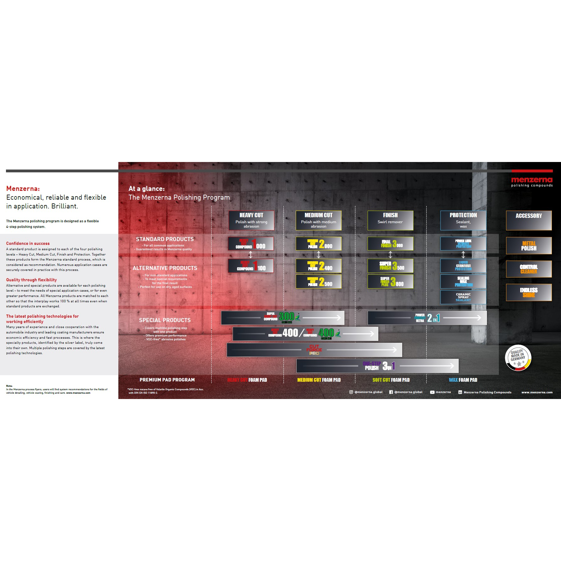 Menzerna's Medium Cut car polishing compounds are the best automotive polishes for signs of use and moderate scratches, and are especially well-suited for light automotive coatings. Medium cut automotive polishes from Menzerna – for a perfect surface with a brilliant gloss.