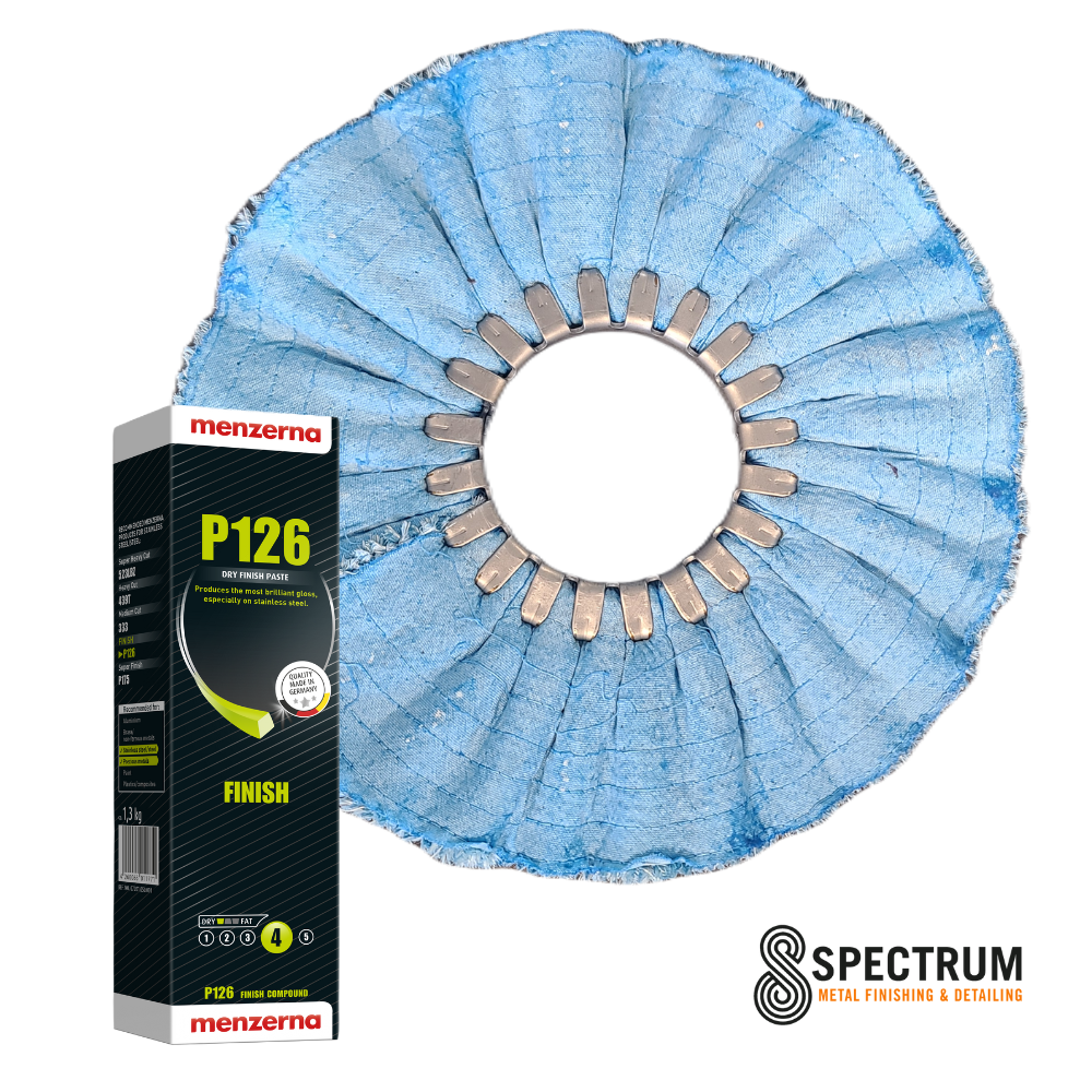 Contains Hilzinger Premium Medium-Soft Dip Treat sisal buffing wheel & Menzerna P126 Finish compound. Additional bars and buffs required for this process can be found in our Starter Aluminum Kit. For maximum gloss and the deepest shine, instead combine with our Deluxe Aluminum Polishing Kit.